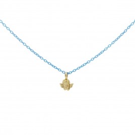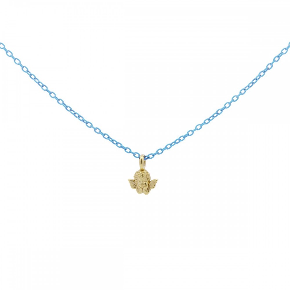 Girocollo con angioletto realizzato in oro 18kt e rifinito a mano e catena verniciata azzurro su base argento925.