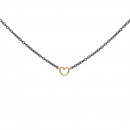 Girocollo con cuore realizzato in oro 18 KT e rifinito a mano con catena verniciata su base argento 925.