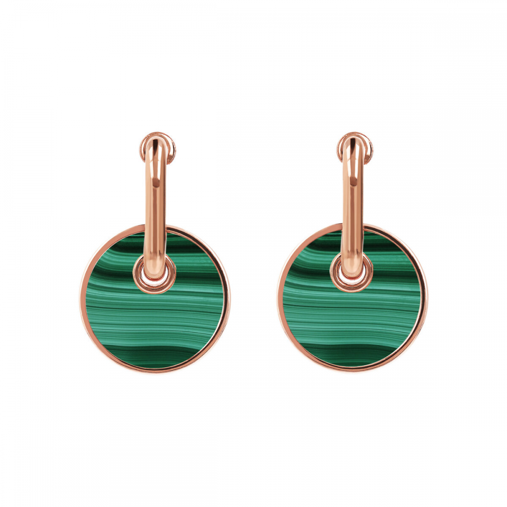 Orecchini Bronzallure realizzato in lega Golden Rosé, placcata Oro rosa 18kt, con malachite.