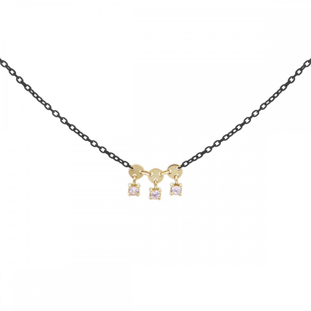 Girocollo con tre punti luce realizzato in oro 18 KT e rifinito a mano e catena verniciata su base argento925.