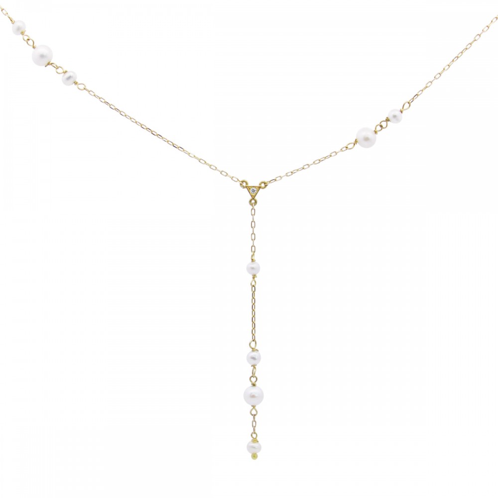 Girocollo con perle di fiume realizzato in oro 18 KT e rifinito a mano con piccolo dettaglio in diamanti.