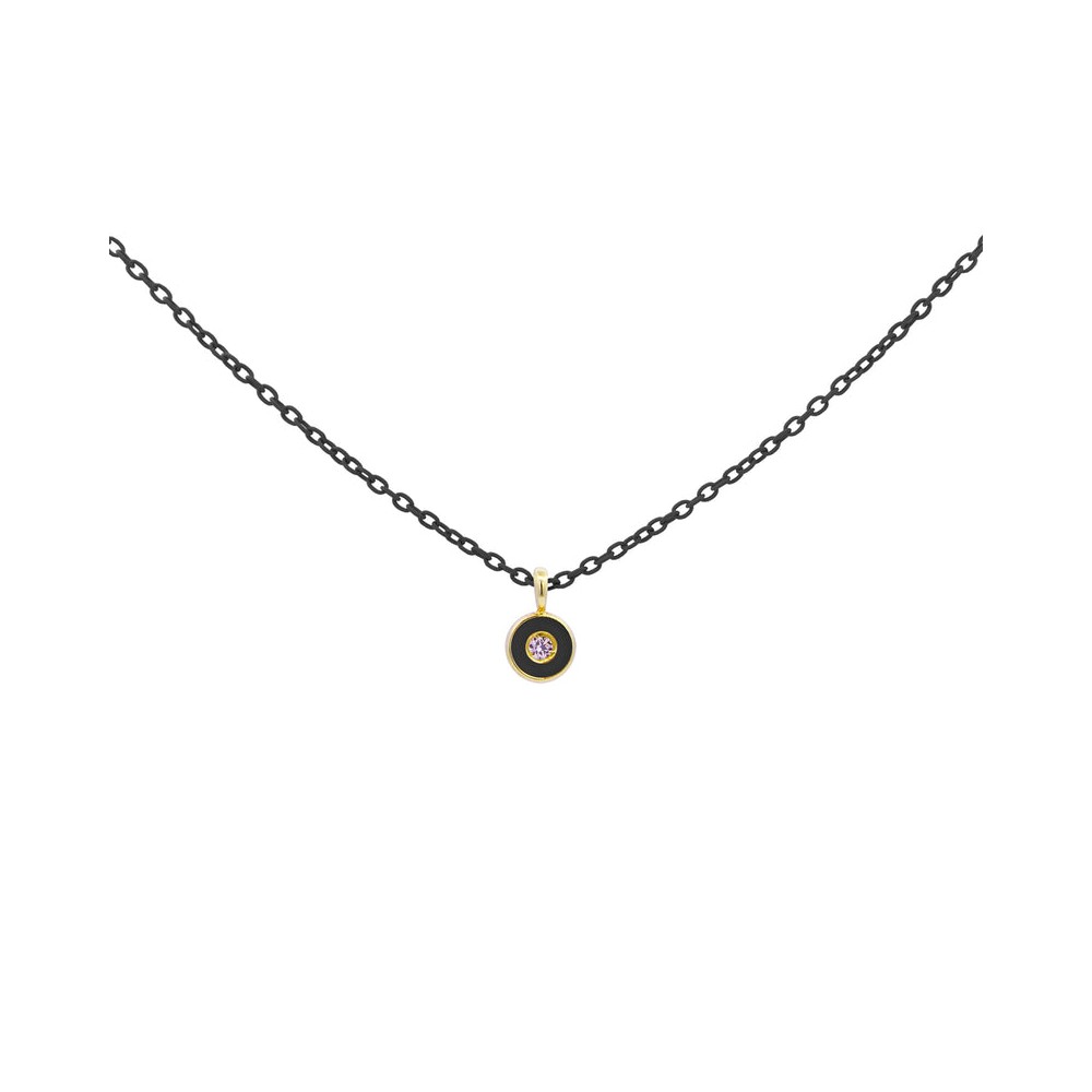 Girocollo con punto luce realizzato in oro 18 KT e rifinito a mano e catena verniciata su base argento925.