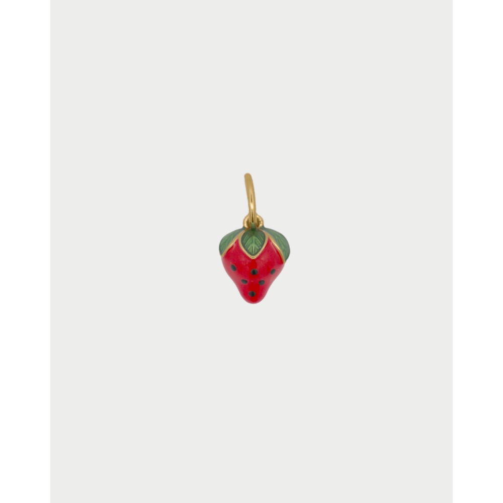 Charm Fragolina con argentatura 925 e oro 18Kt, smaltata a mano. Dolce, giocosa e simbolo di tentazioni irresistibili.