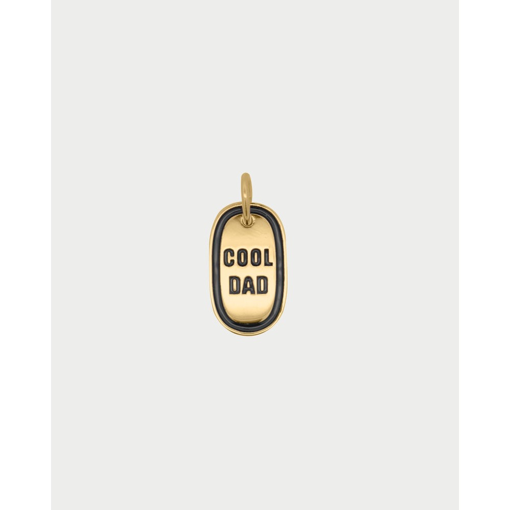Medaglia Edge rettangolare COOL DAD con smalto nero a mano, in lega RDM con argentatura 925 e oro 18Kt.