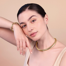 Collana girocollo Etrusca maglia tubogas morbida e chiusura a scomparsa.