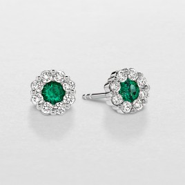 Orecchini in oro bianco 18kt con smeraldo centrale e diamanti.