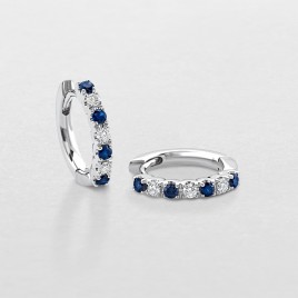 Orecchini a cerchio in oro bianco 18kt con zaffiri e diamanti.
