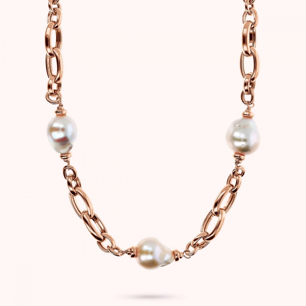 Chocker in Golden Rosè con maxi perle naturali d'acqua dolce e maglia allungata.